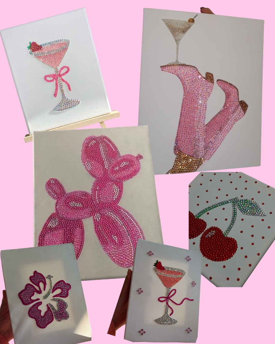 €30 inclusief canvas en glitter, lijm, steentjes en een ontwerp naar keuze.